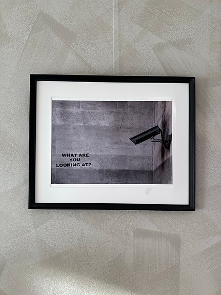 Banksy printti What Are You Looking At? Kehystettynä