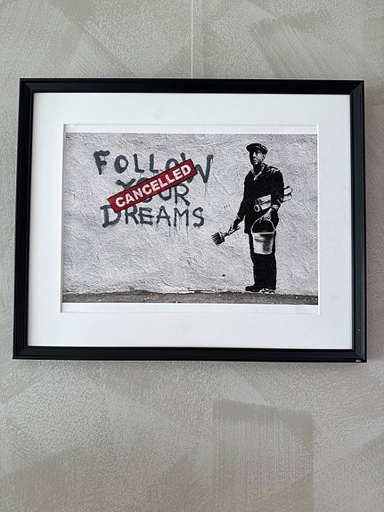 Banksy printti mustilla kehyksillä ”Follow your dreams”