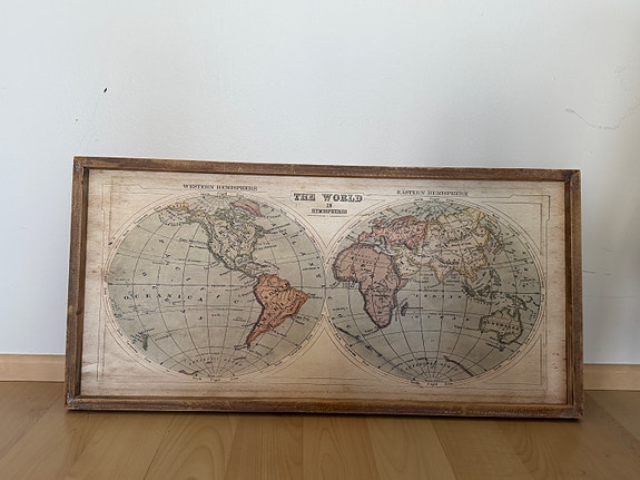 Maailmankartta taulu puukehyksellä