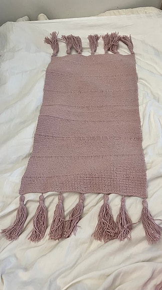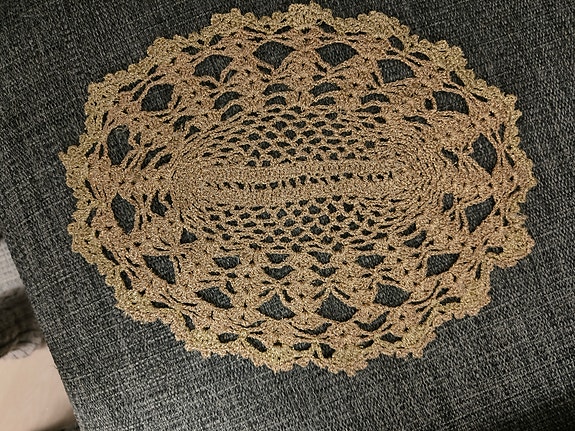 Käsin virkattu pitsi liina kulta lankaa 21 x 29 cm