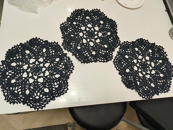 Mustat käsin virkatut pitsi liinat 28 cm, uudet