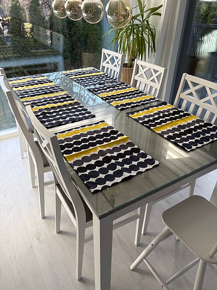 Marimekko pöytätabletit 6 kpl ommeltu Räsymatto kankaasta
