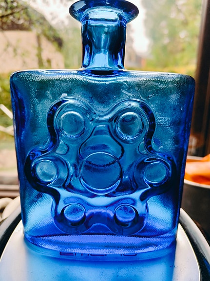 Riihimäen lasi Paukkurauta sininen keräily pullo