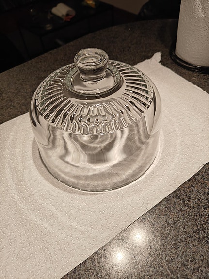 Lasinen kakku/juustokupu kirkas