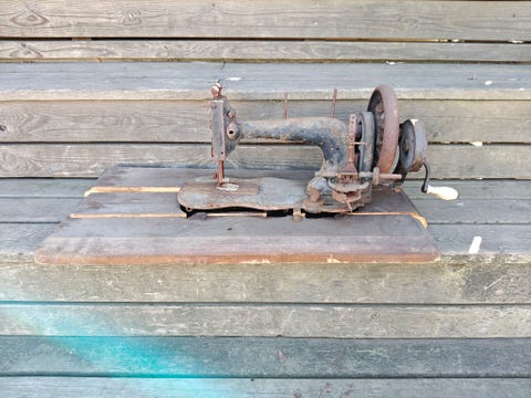 Vanha käsikäyttöinen Singer ompelukone restoroitavaksi.