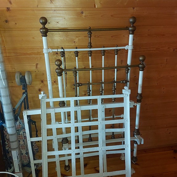 Metallinen antiikkisänky ja runko valkoinen/ messinki