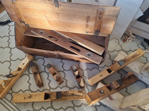 Puinen työkalulaatikko ja käsihöylät