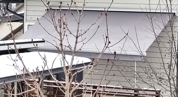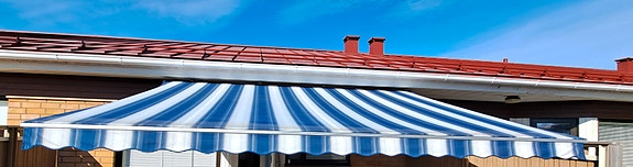 Markiisi terassille harmaa-valkoinen raidallinen