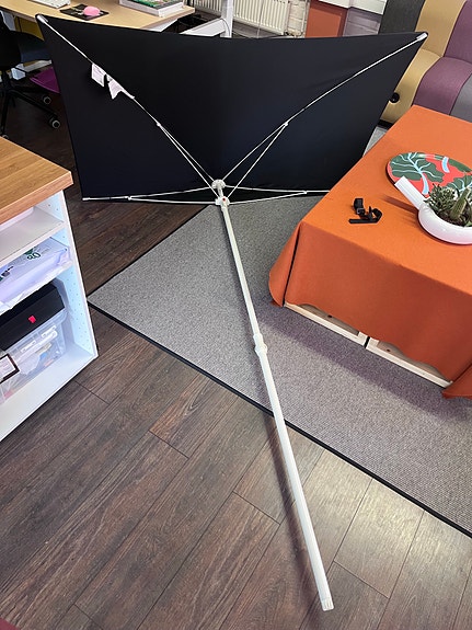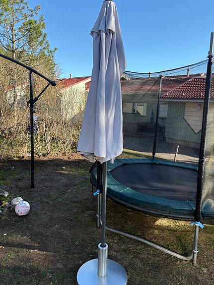 Iso aurinkovarjo jalustalla