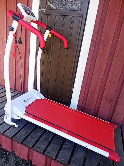 Juoksumatto puna -valkoinen, toimii verkkovirralla.
