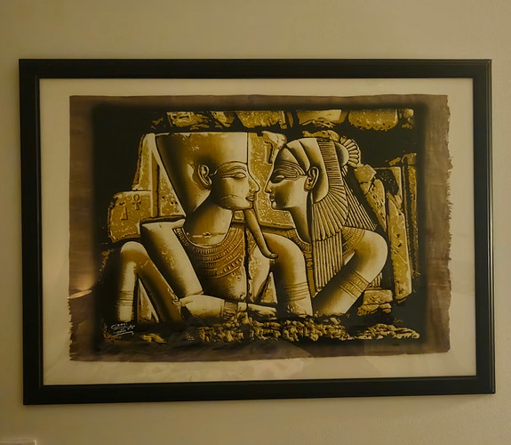 Aito egyptiläinen papyrus taulu + kehykset, pimeässä hohtava