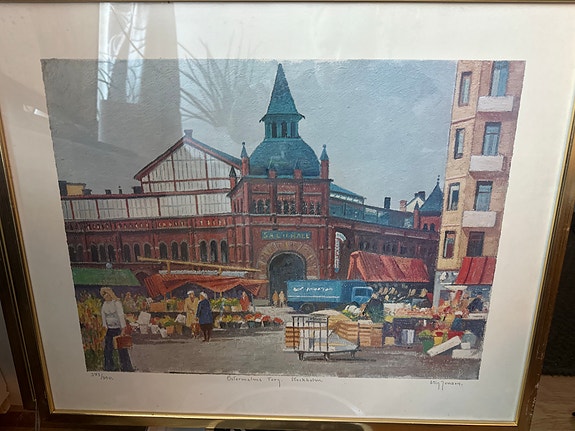 Stig Jonzon signeerattu markkinanäkymä taidegrafiikka kehystetty