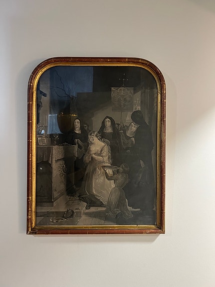 Kehystetty antiikkitaulu kaarevalla puukehyksellä