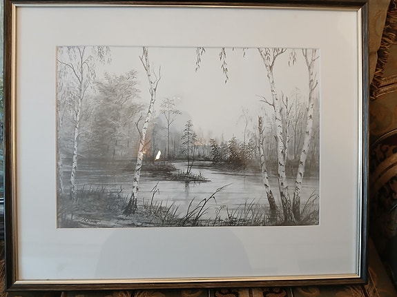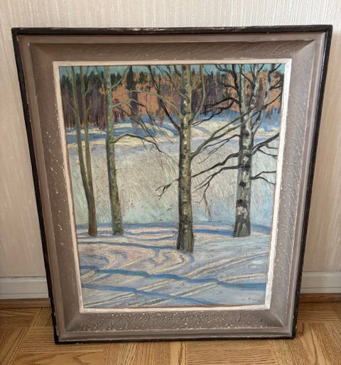 Maalaus talvinen metsämaisema kehystetty