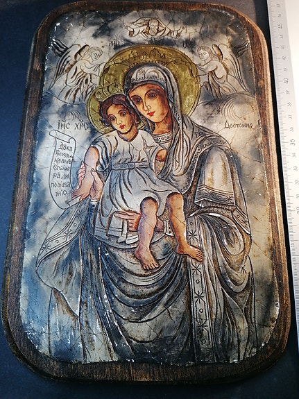 Ikonitaulu Neitsyt Maria ja lapsi puinen
