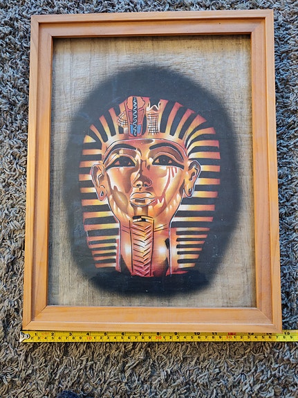 Faarao-aiheinen taulu puukehyksellä