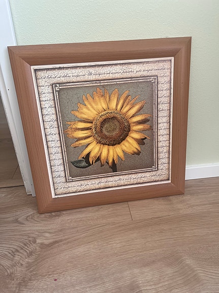 Auringonkukka taulu ruskeilla kehyksillä