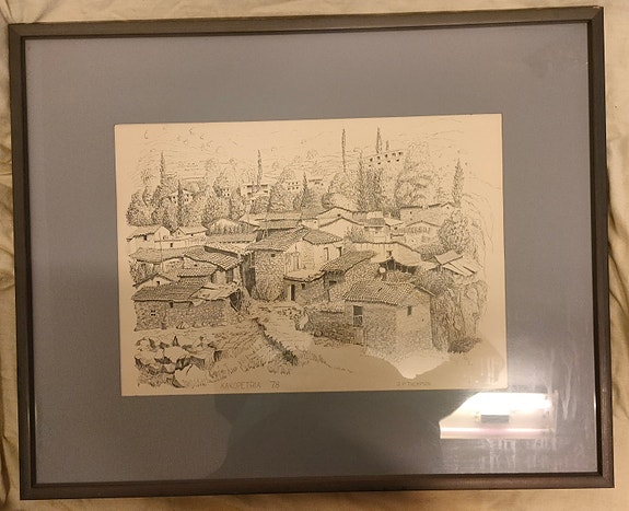 J. P. Thompsonin mustepiirros Kakopetria v.1978 72.5cmx58.25cm