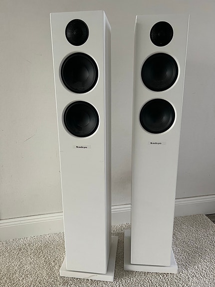 Audio Pro T20 valkoiset lattia kaiuttimet Bluetoothilla