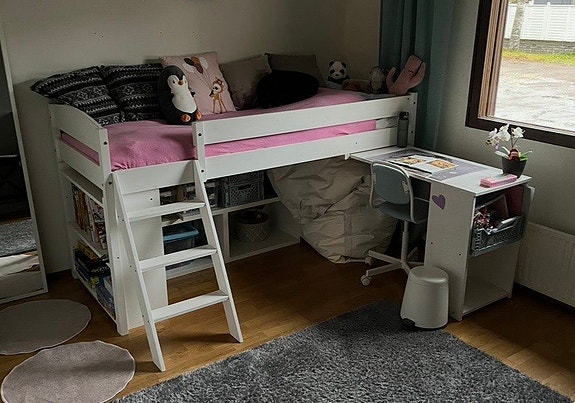 Veke, Lumi parvisänky työtasolla ja hyllyllä