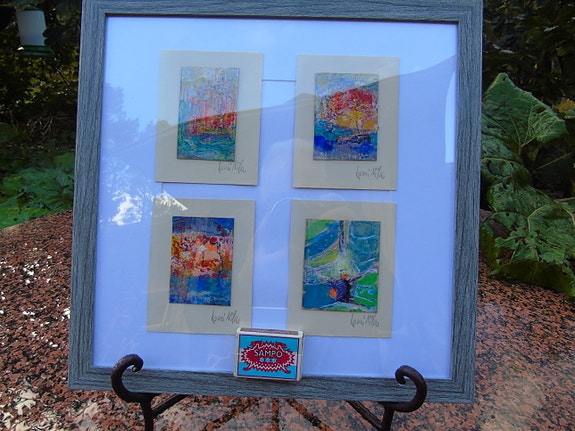 Käsinmaalatut pienet kukkataulut puukehyksillä 60€