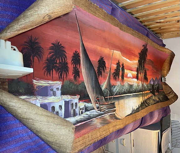 Maalaus palmunäkymä ja pyramidit