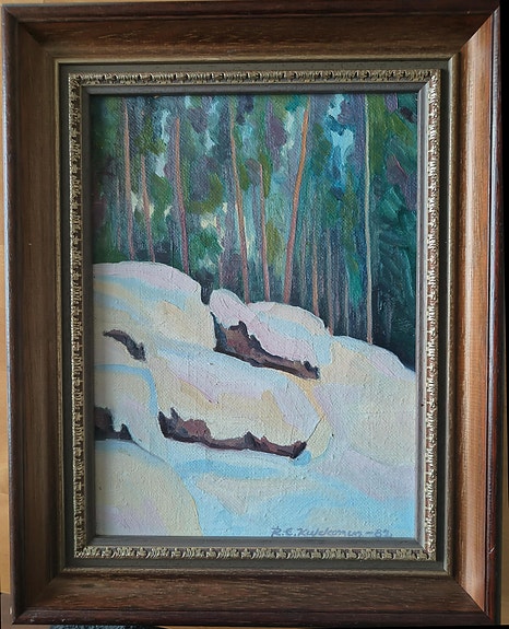 Raimo Emil Kukkonen: "Talvinen rinne" öljymaalaus