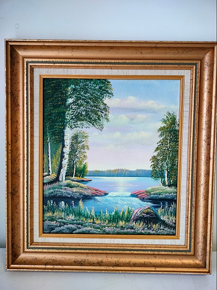 TARJOA! Maisemamaalaus järvimaisema, mäntykehys