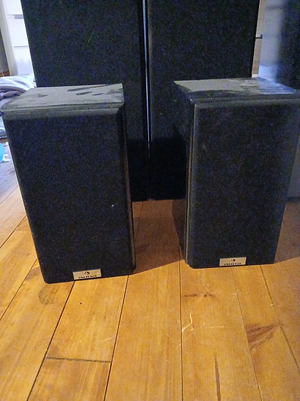 Myydään kotiteatterin etu kaiuttimet Vasen Oikee ja Subwoofer