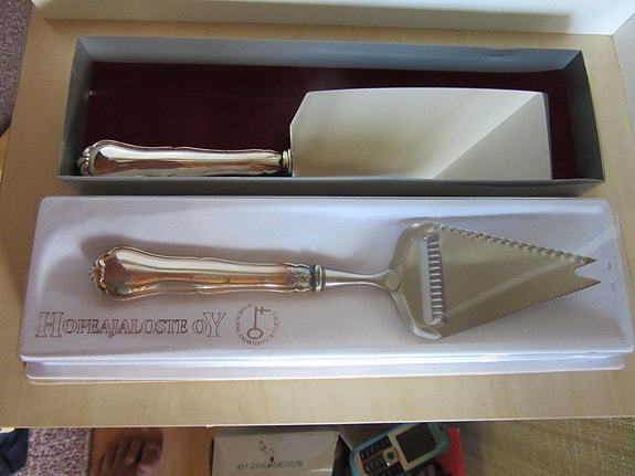 Hopeajaloste Oy juustokirves ja juustohöylä