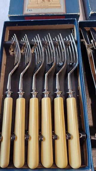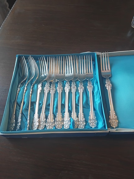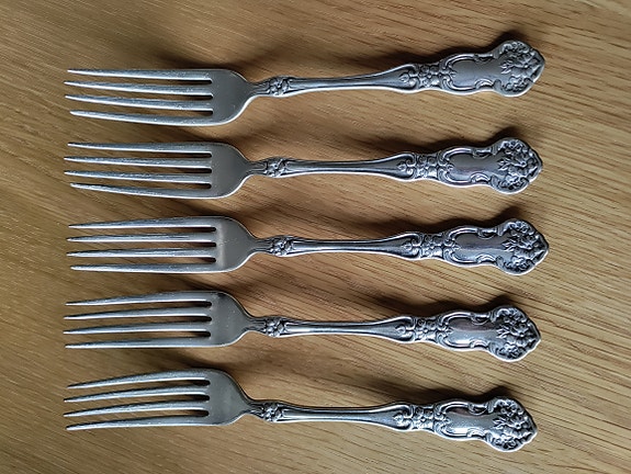 Vintage hopeoitu haarukka 5 kpl