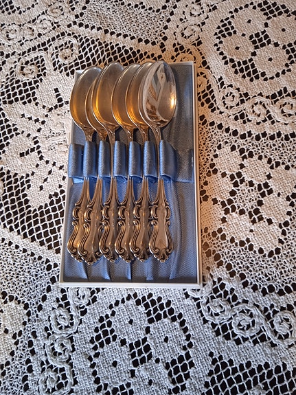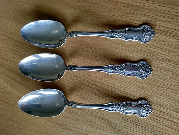 Vintage hopeoitu jälkiruokalusikka 3 kpl