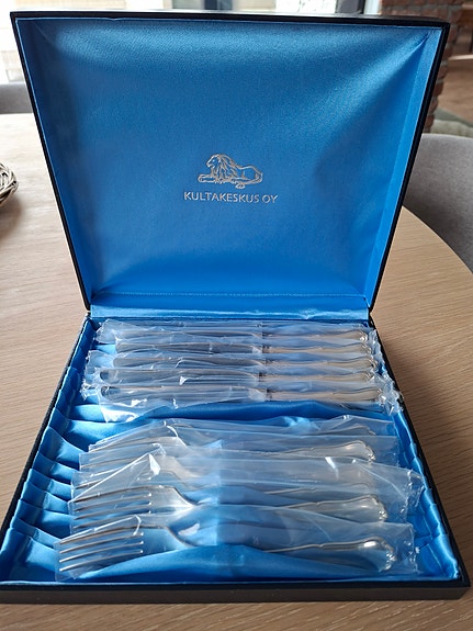 UUDET Kultakeskuksen hopeiset aterimet 6+6