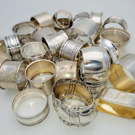 Servettirenkaat/lautasliinarenkaat, hopea, antiikki, vintage/uudet, design