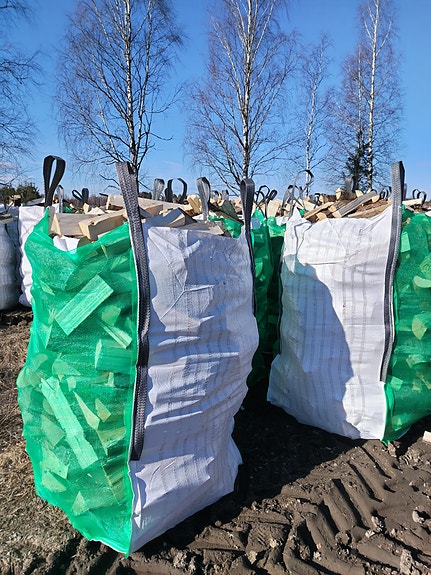 Kuivaa koivuklapia polttopuuta säkissä