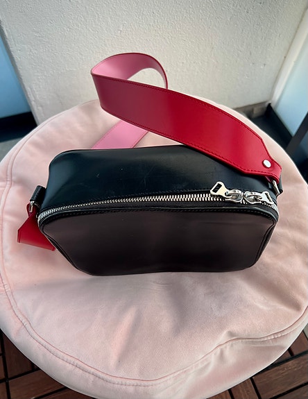 punainen olkalaukku