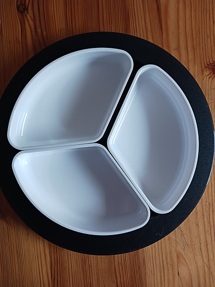 Soile tarjoiluastiat pyörivällä alustalla