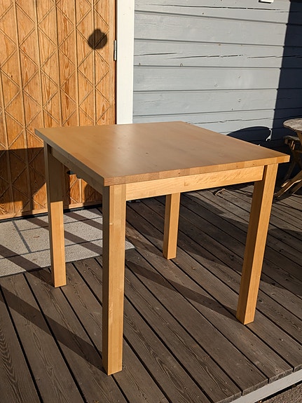 Neliön muotoinen ruokapöytä massiivipuuta IKEA Björkkuden