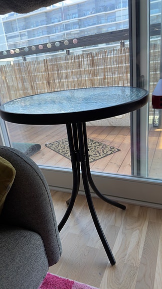 Pieni lasinen pyöreä pöytä