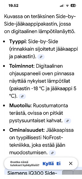 100 €Side by side -jääkaappipakastin ruostumatonta terästä digitaalinäytölläHausjärvi, Ryttylä, Kanta-Häme25.2.Lisää suosikiksi.Avaa ilmoitus