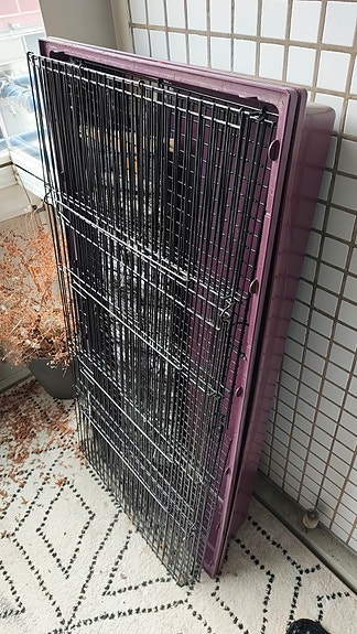 Metallinen koiranhäkki tukevalla muovipohjalla