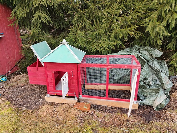 Kana-/pieneläinkoppi ja ulkoaitaus puinen punainen