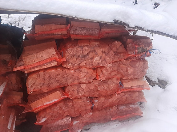 Kuivaa koivuklapia verkkosäkeissä