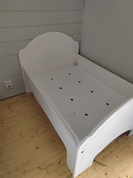Valkoinen pinnasänky 50€ ja JYSK-patja 50€