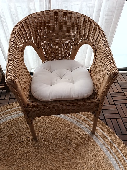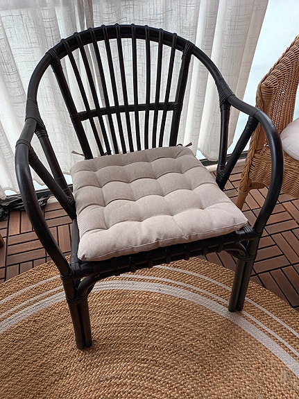 Musta rottinkituoli istuintyynyllä
