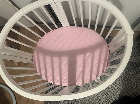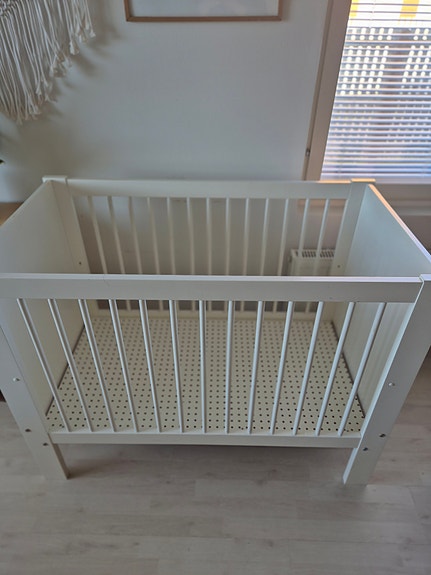 Valkoinen pinnasänky / kehto pyörillä + patja