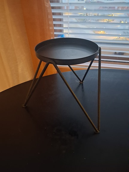 Metallinen musta korokealusta kolmijalkainen