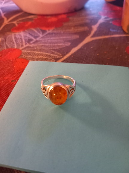 Sormus - meripihka (hopeaa)