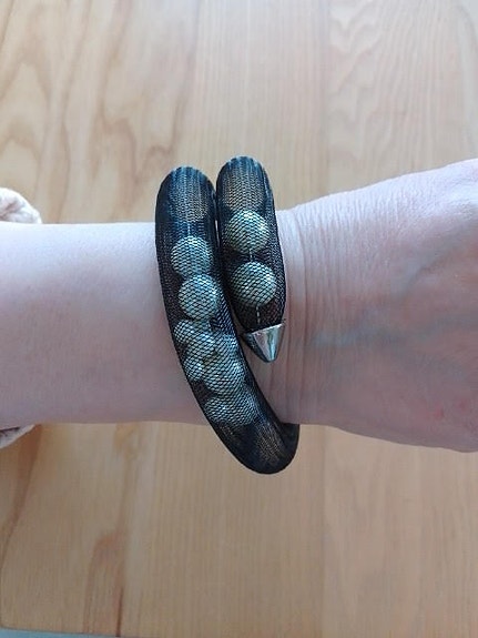 *Nahka rannekoru musta ja säädettävä - niitit