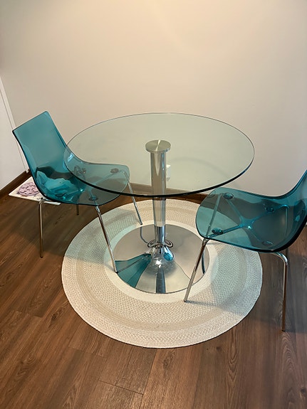 Lasinen ruokapöytä + neljä tuolia